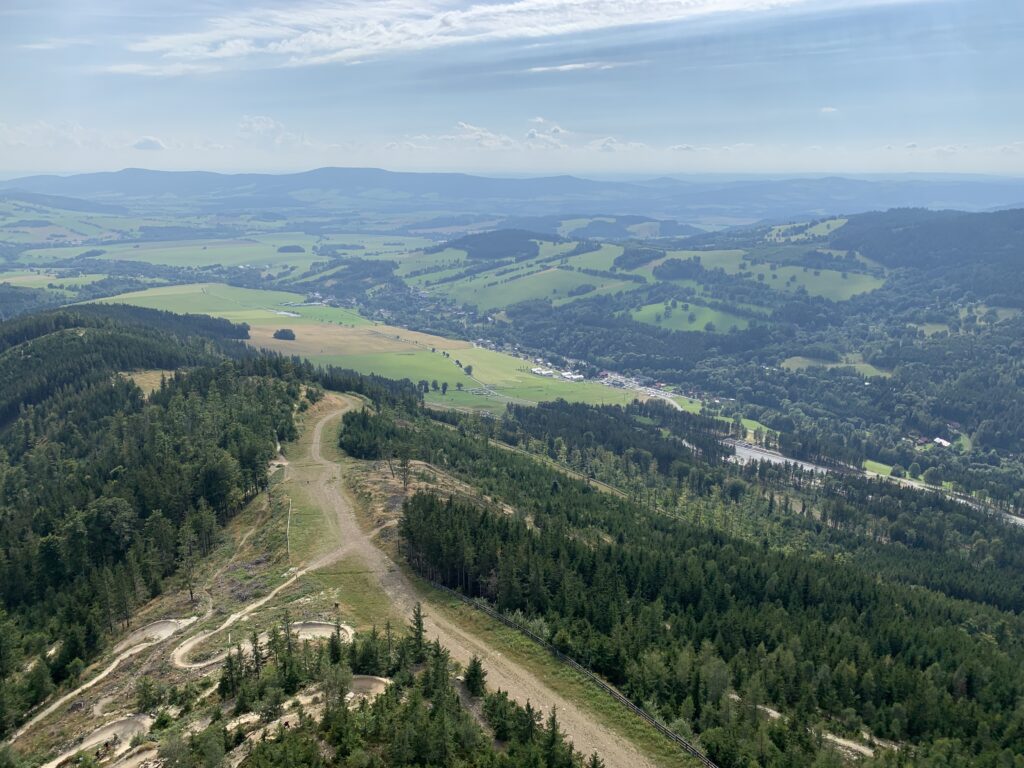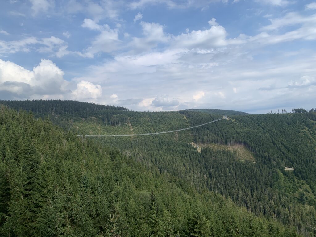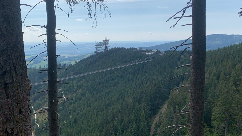 Kolejnym celem na naszej trasie była Dolna Morawa, a w niej niedawno otwarty, najdłuższy linowy most dla pieszych na świecie – Skay Bridge 721. Most jest położony 95 metrów nad doliną i łączy schronisko Slaměnka na zboczu szczytu Slamník (1232 m n.p.m.) ze zboczem góry Chlum (1118 m n.p.m.). Trasa jest jednokierunkowa. Została ona otwarta 13 maja 2022.