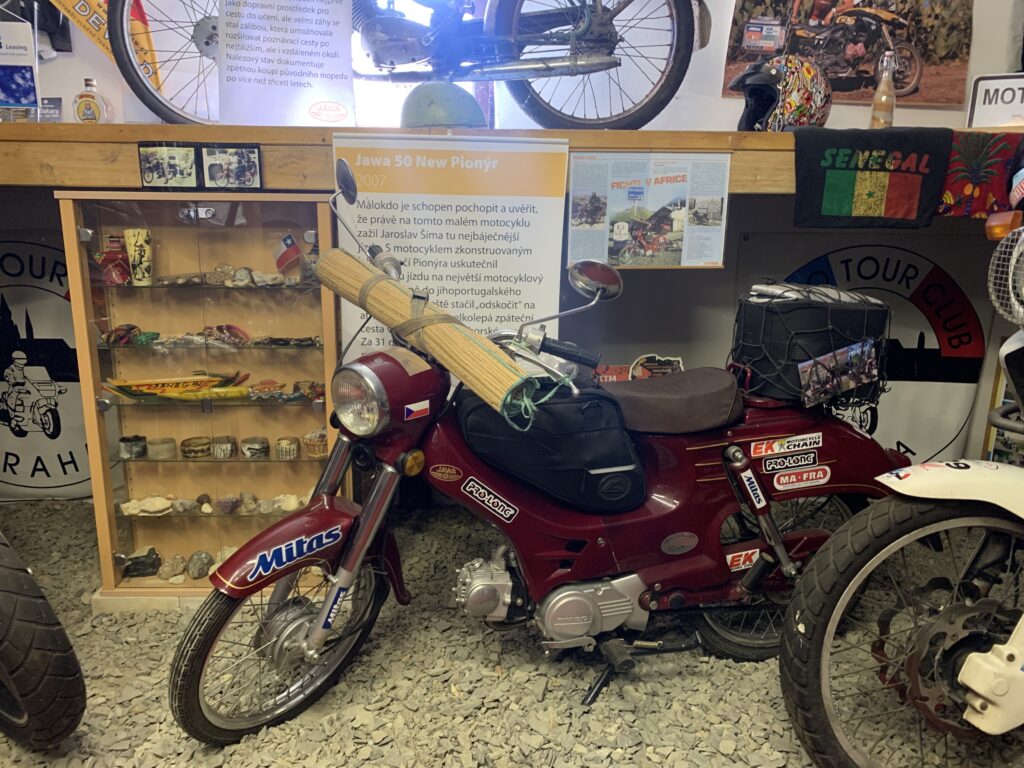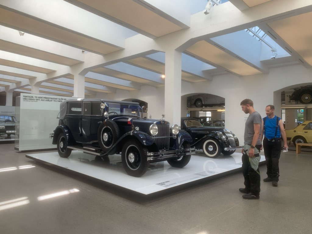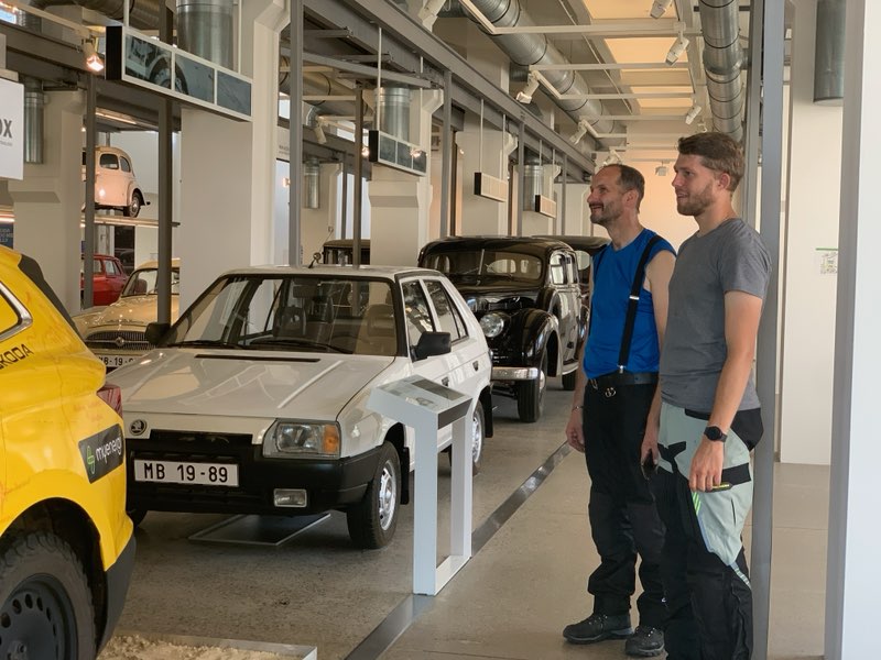 Następnym naszym punktem na trasie było muzeum Skody w miejscowości Mlada Bolesław. Część naszej grupy poszła do muzeum, a ja z kolegą szukaliśmy mechanika do motocykla. Nie było to łatwe. Miejscowy serwis KTM – a nie chciał podjąć się pomocy. I problemem nie był wcale brak części, bo wąż na podmiankę się znalazł, tylko rozpoczynający się za godzinę… weekend! Czechom z KTM-a nie chciało się brać za robotę, która kosztował by ich konieczność zostania chwilę po godzinach w robocie i to w piątek wieczorem… A tam pewnie zimne piwo w domu czekało… Na szczęście jeden z mechaników obiecał, że nam pomoże, ale w swoim prywatym warsztacie, w domu. Mógł tam jednak być dopiero na 18-tą. Pozostało nam więc około godziny czasu, by jednak zobaczyć muzeum Skody.
