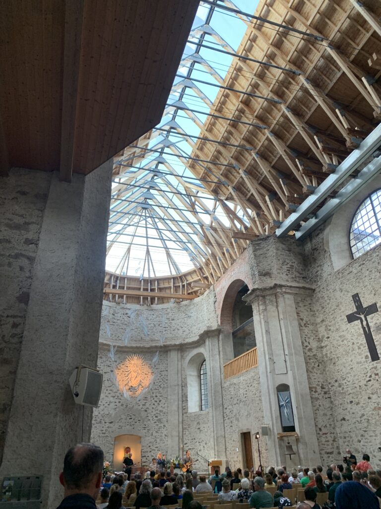 Zanim jednakże w końcu go znaleźliśmy trzeba wspomnieć o drodze jaką doń jechaliśmy. Polecam ją każdemu motocykliście. To przeurocza trasa o numerze 311 przez Góry Orlickie, wzdłuż samej granicy Czesko – Polskiej. Szczególnie piękna jest ona miedzy miejscowościami Kraliky a Deštne w Górach Orlickich. Po drodze – w miejscowości Neratov – można zobaczyć ciekawy kościółek ze szklanym dachem. Kiedyś oryginalny dach spłoną i „zwariowani” Czesi wpadli na pomysł, by zrobić nowy – ze szkła.